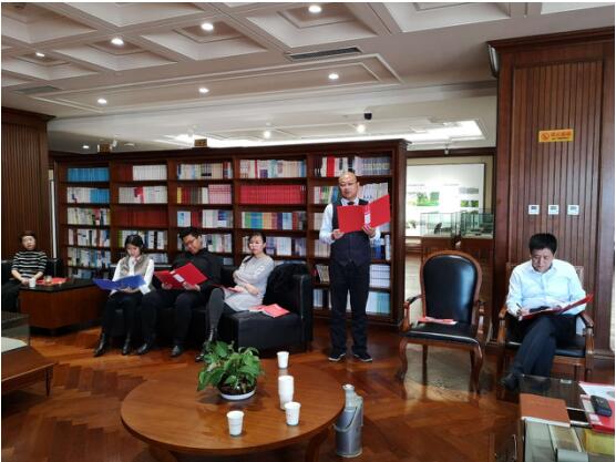 為深入學(xué)習(xí)貫徹習(xí)近平新時代中國特色社會主義思想和黨的十九大精神,增強(qiáng)黨性修養(yǎng),堅(jiān)定理想信念,按照集團(tuán)黨委2018年黨建活動安排,11月22日,財(cái)信集團(tuán)黨委在財(cái)政廳辦公樓三樓圖書館組織了“誦讀紅色經(jīng)典 增強(qiáng)黨性修養(yǎng)”活動。集團(tuán)黨委委員和全體員工參加了活動,集團(tuán)黨委委員王葉主持誦讀活動。